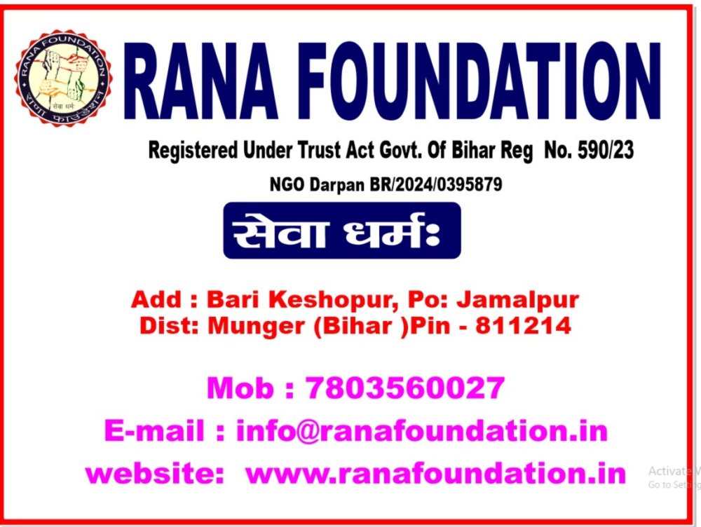 The Rana Foundation is a dedicated social welfare trust established with a vision to foster a better society through a variety of initiatives focused on social welfare and education. Founded by Mr. Basant Kumar Rana on February 17, 2023, the foundation operates under the Indian Trust Act and is headquartered in Jamalpur, Munger, in the Munger district of Bihar. The Rana Foundation’s mission is to address pressing social issues and provide educational opportunities for underserved communities, striving to create a more equitable society where everyone has access to basic necessities and the chance to transform their lives through education.